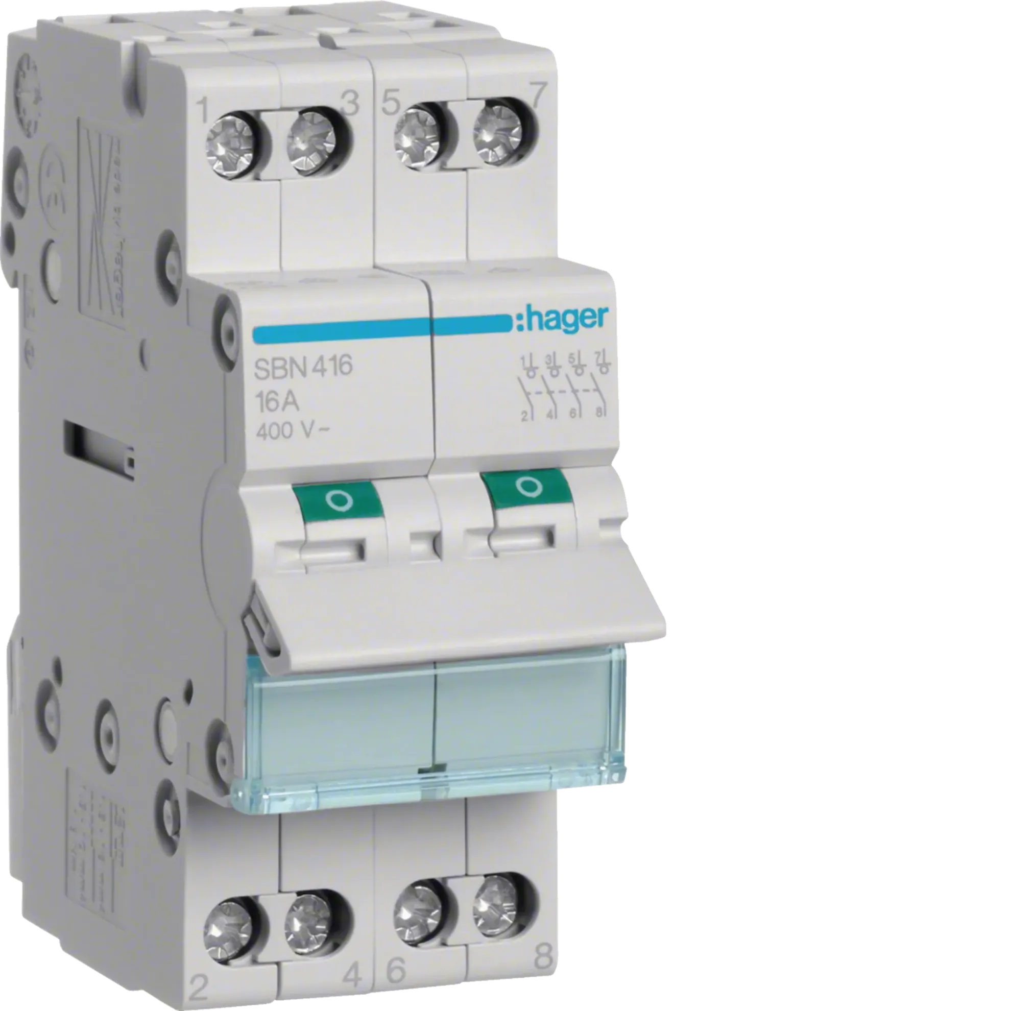 Hager SB416, 4 kutuplu ve 16A nominal akım kapasiteli modüler izolatör anahtardır. Elektrik devrelerinde güvenli bir şekilde enerji kesme, devre izolasyonu ve bakım sırasında güvenlik sağlamak için kullanılır. 4 kutuplu yapısı sayesinde özellikle üç fazlı + nötr sistemlerde tam izolasyon imkânı sunar.