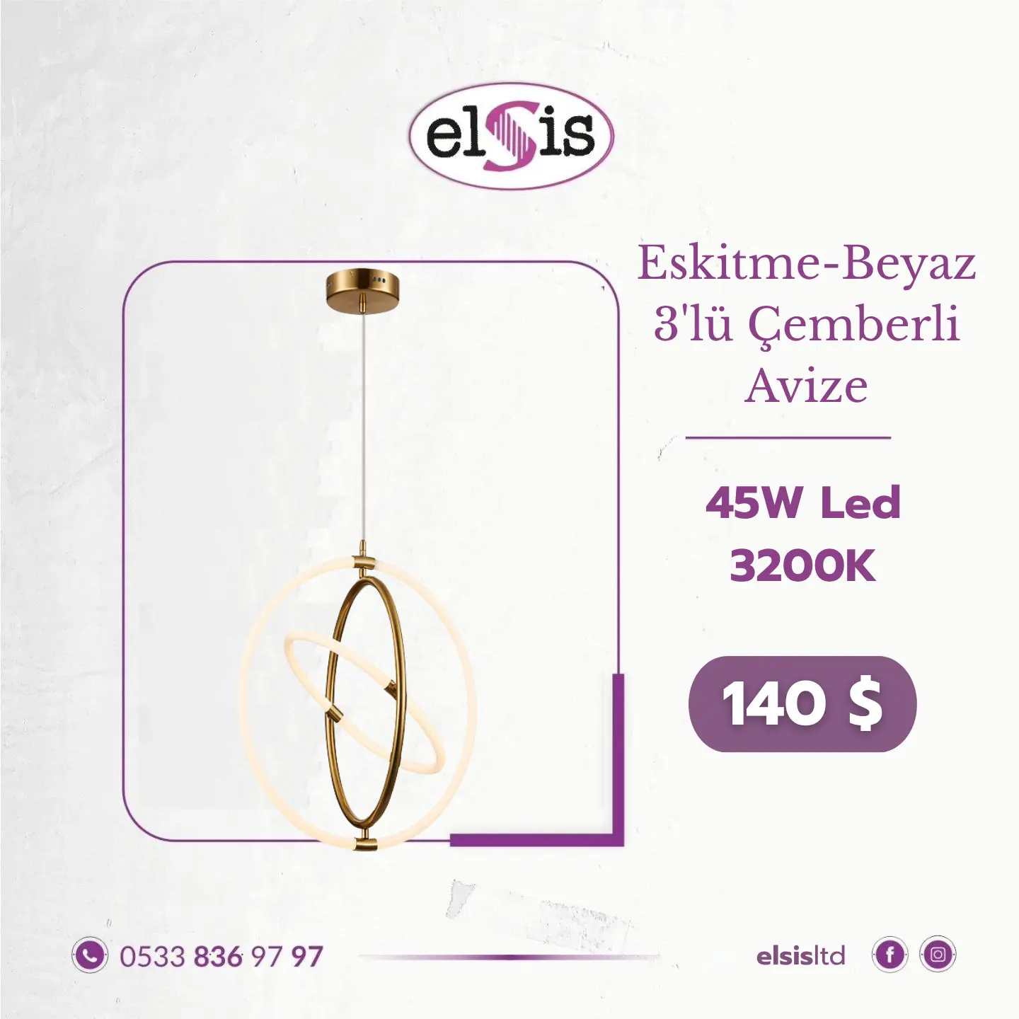 Eskitme - Beyaz 3'lü Çemberli Avize