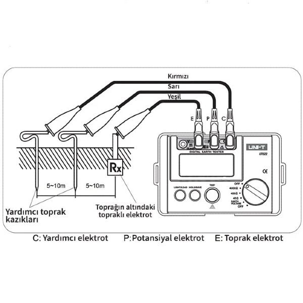 Toprak Gerilimi Ölçümü: AC 0V – 200V (test öncesi güvenlik kontrolü)