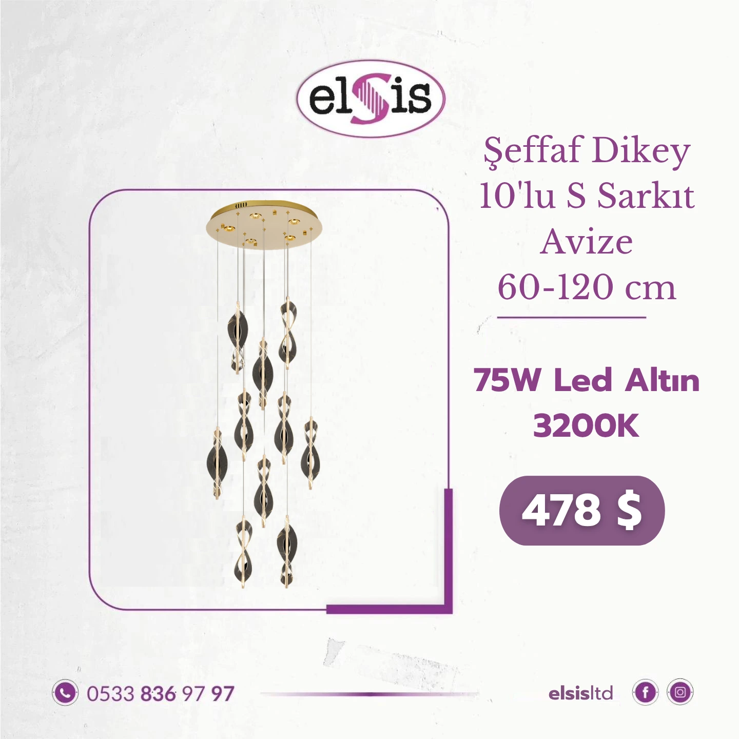 Altın Şeffaf Dikey 10'lu S Sarkıt Avize