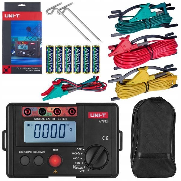 UNIT UT522, topraklama tesisatlarının periyodik bakım ve kontrolü için tasarlanmış, dayanıklı ve güvenilir bir topraklama direnci test cihazıdır. Elektrik çarpmalarına karşı koruma sağlayan topraklama sistemlerinin etkinliğini ölçmek, yasal yönetmeliklere uygunluğu doğrulamak için idealdir. 2 kutuplu (basit) ve 3 kutuplu (hassas) ölçüm yöntemlerini destekler.